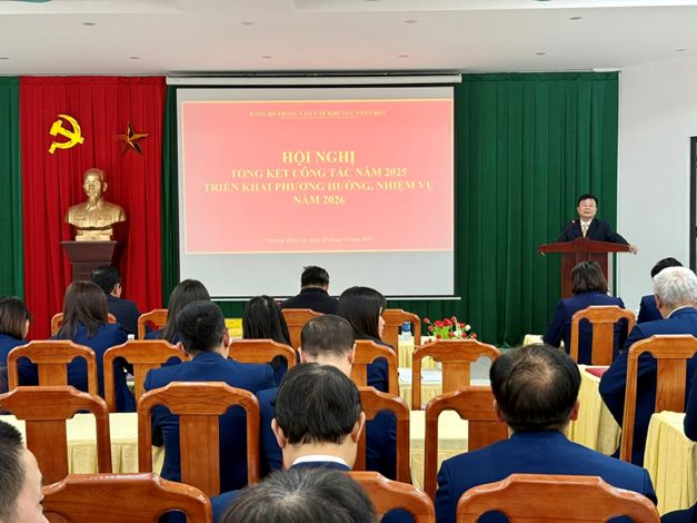 Thực hiện chương trình công tác Đảng năm 2025. Được sự nhất trí của Đảng ủy xã Thượng Bằng La, chiều ngày 29/12/2025 Đảng bộ Trung tâm Y tế Khu vực Văn Chấn đã long trọng tổ chức Hội nghị tổng kết công tác Đảng năm 2025 và triển khai phương hướng, nhiệm vụ năm 2026. Hội nghị nhằm đánh giá toàn diện kết quả lãnh đạo, chỉ đạo thực hiện nhiệm vụ chính trị, công tác xây dựng Đảng trong năm qua, đồng thời đề ra phương hướng, giải pháp thực hiện hiệu quả nhiệm vụ năm 2026.
