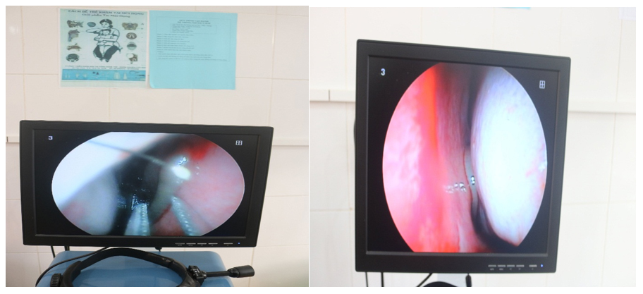 Gắp hai con đỉa từ mũi bệnh nhân tại TTYT huyện Văn Chấn