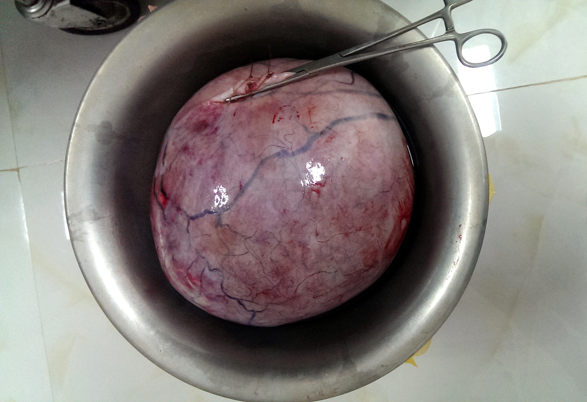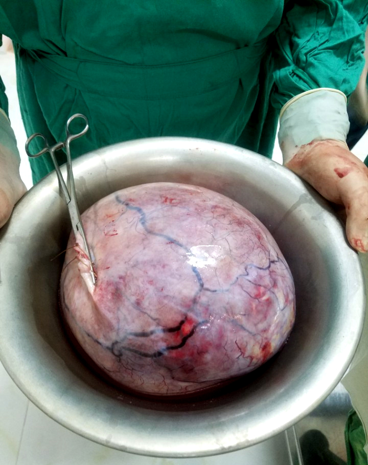 Đúng như dự kiến ban đầu, khối u dính vào nhiều tạng trong ổ bụng. Sau hơn 2 giờ phẫu thuật, khối u đã được lấy trọn vẹn ra khỏi ổ bụng bệnh nhân, đường kính: 30 cm, cân nặng 5,5 kg.