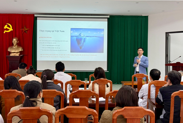 Giảng viên lớp tập huấn là BSCKII Phạm Hữu Thanh – Trưởng phòng Quản lý chất lượng Bệnh viện đa khoa số 1 tỉnh Lào Cai.