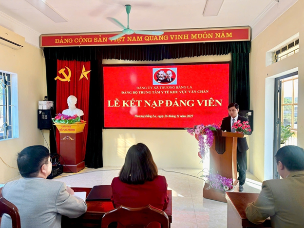 Chiều ngày 26/11/2025, tại hội trường Trung tâm Y tế khu vực Văn Chấn, Chi bộ Khối Dự phòng và Chi bộ Khối lâm sàng long trọng tổ chức lễ kết nạp Đảng viên mới cho 04 quần chúng ưu tú đang công tác tại các Khoa/Phòng: