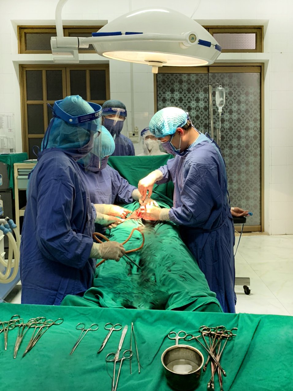Nhận thấy tình trạng của cả thai phụ và trẻ sơ sinh là nghiêm trọng, đặc biệt, em bé đang hết sức nguy hiểm, Trung tâm Y tế huyện Văn Chấn đã triển khai mổ cấp cứu không trì hoãn để lấy thai. Kíp mổ gồm: Bác sỹ Đỗ Lâm Phúc, Bác sỹ Hoàng Thị Kiều Linh, Cán bộ gây mê Phạm Ngọc Cảnh, NHS Trịnh Thị Vinh, NHS Nguyễn Thị Phượng và Y sỹ Đỗ Thị Vân Anh đã thực hiện an toàn ca mổ đặc biệt này. Sau hơn 30 phút phẫu thuật, một bé trai đã được đón ra khỏe mạnh và chuyển đến theo dõi, điều trị tại khoa Nhi. Còn sản phụ được chuyển đến một khu vực riêng để vừa chăm sóc hậu phẫu vừa điều trị Covid-19. Hiện tại sức khỏe của cả hai mẹ con đều ổn dịnh, trẻ sơ sinh đã được test nhanh Covid-19 cho kết quả âm tính.