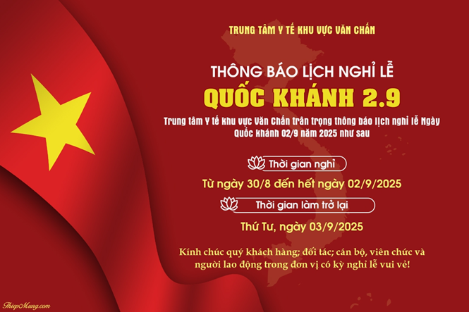 TRUNG TÂM Y TẾ KHU VỰC VĂN CHẤN THÔNG BÁO LỊCH NGHỈ LỄ NGÀY QUỐC KHÁNH 02/9 NĂM 2025