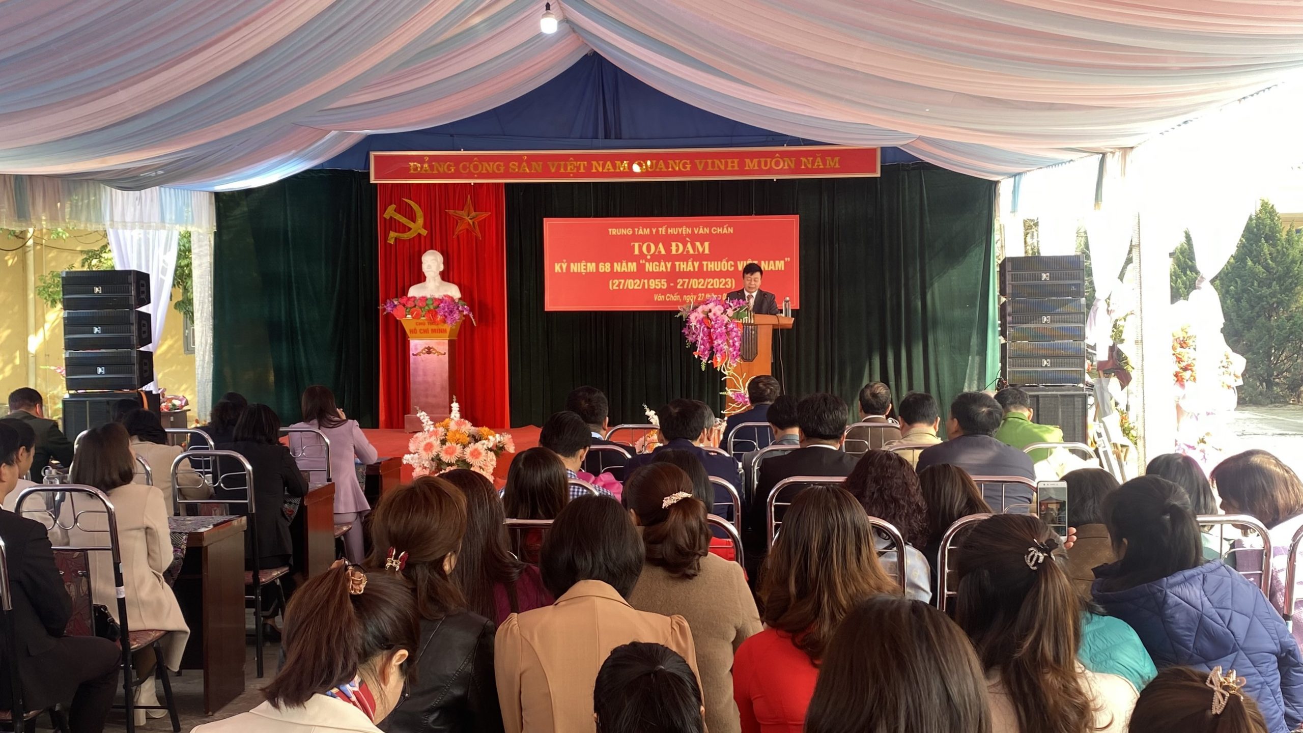 Sáng ngày 27/2/2023, Trung tâm Y tế huyện Văn Chấn tổ chức tọa đàm kỷ niệm 68 năm Ngày Thầy thuốc Việt Nam (27/2/1955-27/2/2023). Dự buổi gặp mặt có đồng chí Hoàng Thị Hồng Phóng – Ủy viên Ban Thường vụ Huyện ủy, Phó chủ tịch Hội đồng nhân dân huyện; đ/c Lò Thị Thúy Nga – Ủy viên Ban Chấp hành Đảng bộ huyện, Phó chủ tịch UBND huyện; Các đ/c lãnh đạo các phòng, ban, cơ quan, đơn vị thuộc huyện; lãnh đạo Đảng ủy, Ủy ban nhân dân xã Cát Thịnh, thị trấn Trần Phú; Về phía Trung tâm Y tế có đ/c Nguyễn Đình Liên – Bí thư Đảng bộ Giám đốc Trung tâm Y tế cùng lãnh đạo, cán bộ, viên chức, người lao động Trung tâm Y tế, các đ/c nguyên lãnh đạo trung tâm Y tế; lãnh đạo phòng khám đa khoa khu vực và Trạm Y tế các xã, thị trấn cùng phóng viên Trung tâm Truyền thông – Văn hóa huyện đến dự và đưa tin.